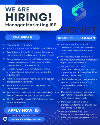 - Memiliki pemahaman mendalam tentang layanan internet, teknologi digital, dan tren industry ISP.